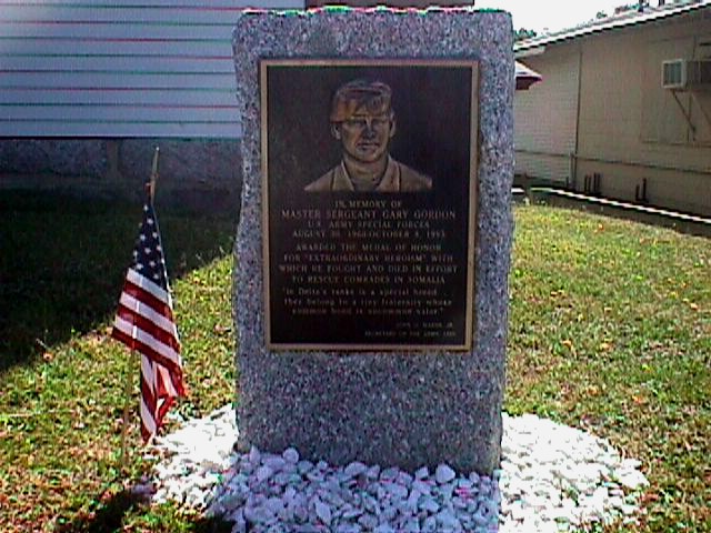 Gordon was awarded the Medal of Honor for sacrificing his life while rescuing a downed helicopter crew in Mogadishu, Somalia on October 3, 1993. It was supposed to be a swift and clean mission. U.N. relief efforts to distribute food to the starving people of that country were being hampered by guerrilla ambushes and the US planned to aid the UN in its humanitarian mission. Army Rangers in 15 helicopters, including six Black Hawk troop-carrying helicopters, were to fly into southern Mogadishu in the hope of capturing the key lieutenants of Somali warlord Mohammed Farrah Aidid.